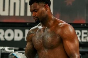 从照片中可以看到,减重后的锡安,身材看起来更加结实了,全是肌肉。