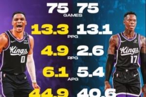 威少上赛季出战75场,场均13.3分4.9板6.1助攻,三项命中率44.9/32.3/66.1%