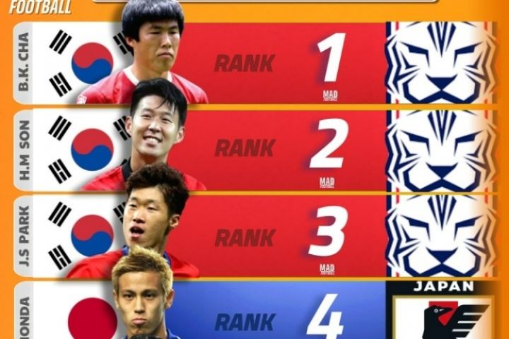 体育资讯08月16日讯 媒体mad football评选了亚洲历史最佳球员,无一名中国球员入选,韩国球员霸榜前三。