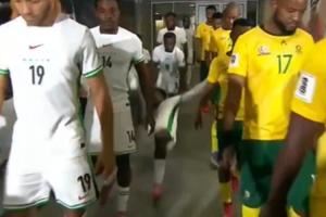 体育资讯09月10日讯 世预赛非洲区C组尼日利亚1-1战平南非的比赛中,球员在入场时发生搞笑一幕。