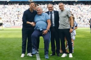 体育资讯9月13日讯 在皇马对阵皇家社会的比赛前,皇马参加了皇家社会主场为托沙克举行的致敬仪式,这位威尔士教练曾执教过皇家社会和皇马。